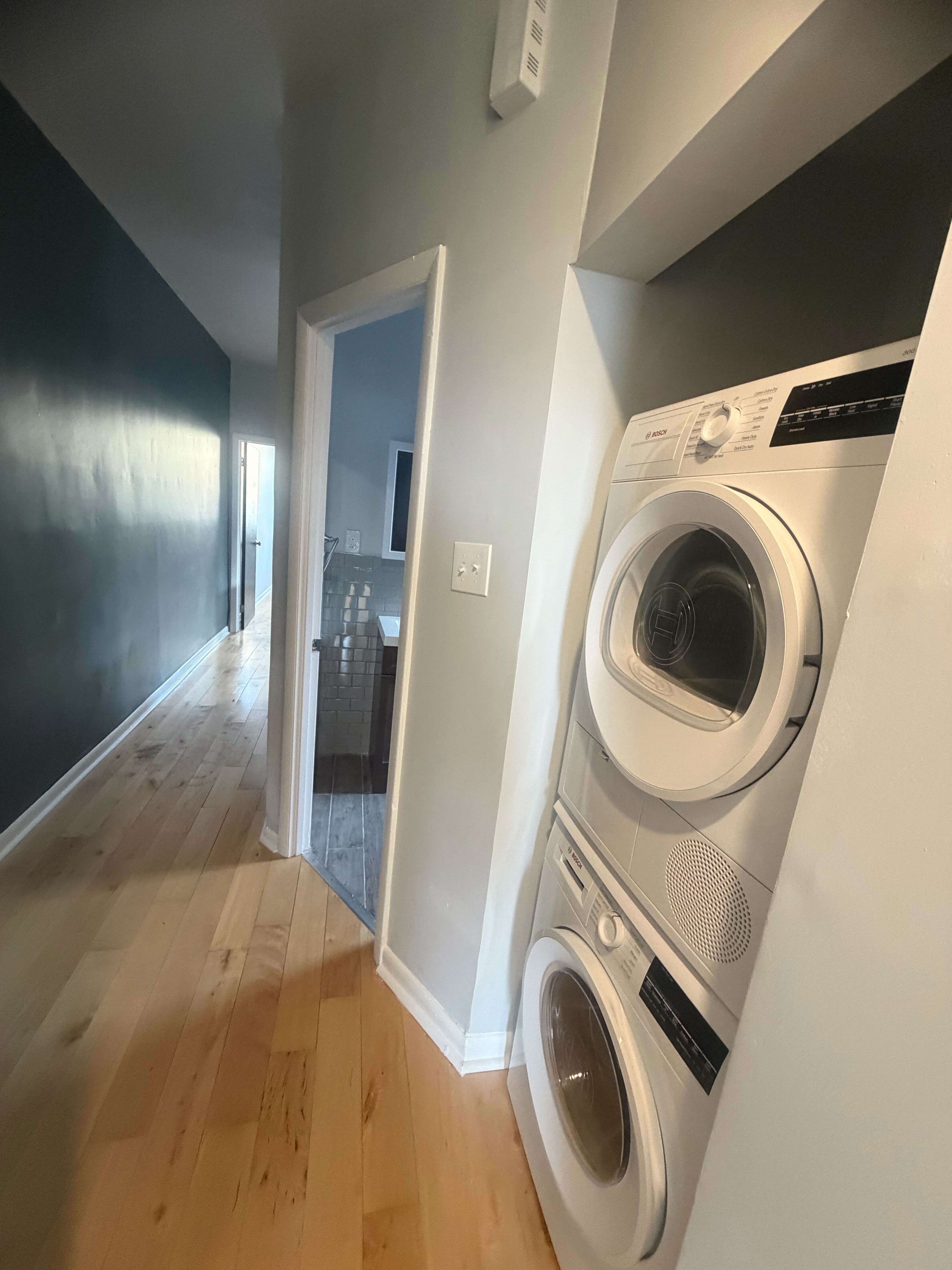 beautiful modern update, stainless steel appliances all installed, dishwasher, garage disposal, granite countertops, backsplash, white cabinets, recess lighting, accent wall